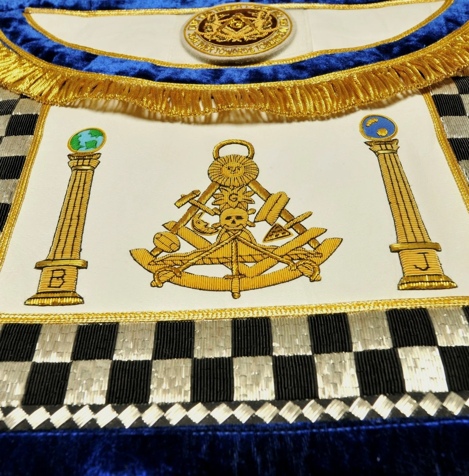 The aprons showcased here were all commissioned by an individual client and designed in a collaborative manner. Let the Round Ashlar help you with your custom design today! Lodge officer commissions welcome! To begin, call or text your inquires to (619) 851 - 9310 or email roundashlar@gmail.com.